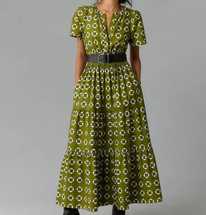 2025 Women's Spring And Summer Lightweight Short Sleeve V Casual Midi Maxi Dresses
