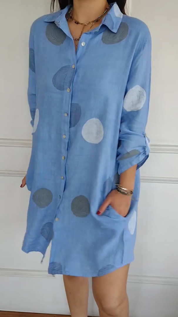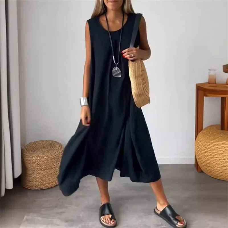 2024 Spring and Summer Ladies Elegant Round Neck Loose Cotton and Linen Dress