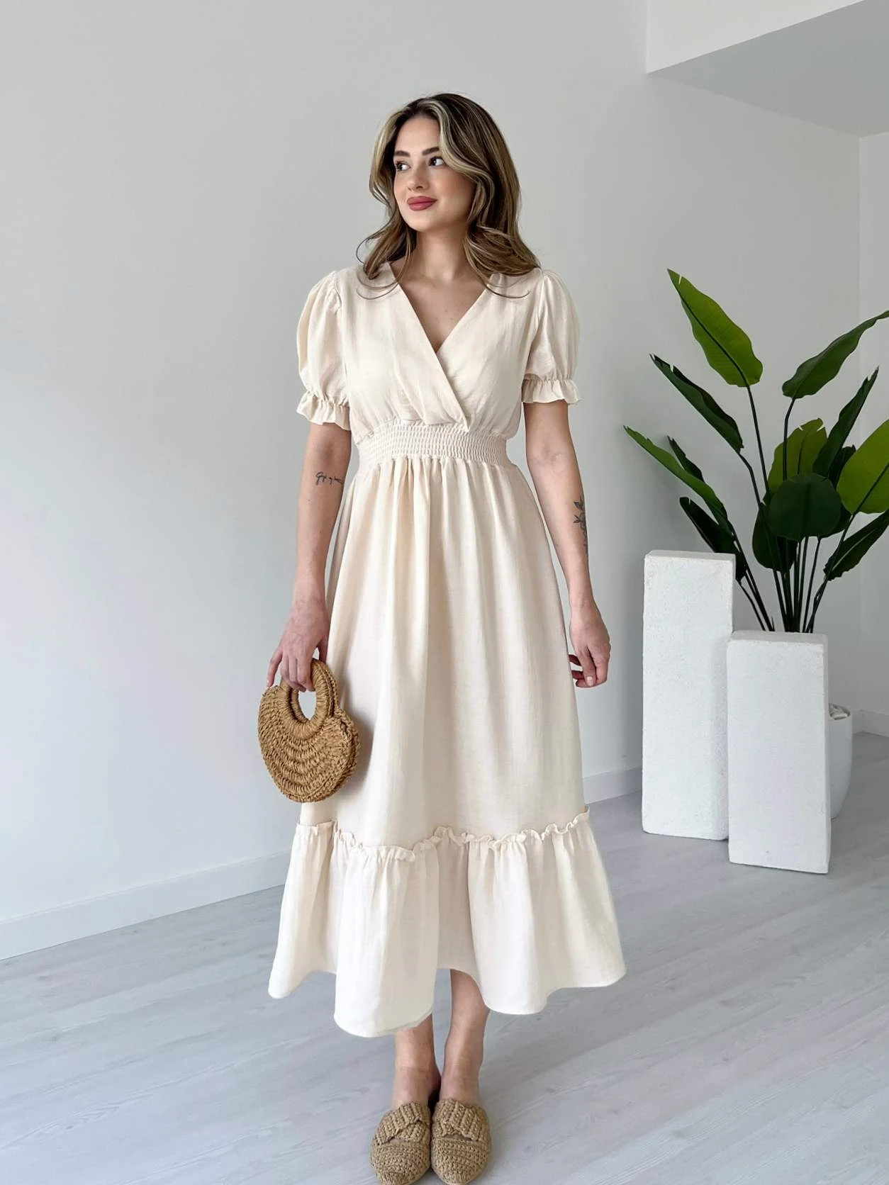 🌸🌸🌸Elegant V-neck dress with ruffled sleeves🌿