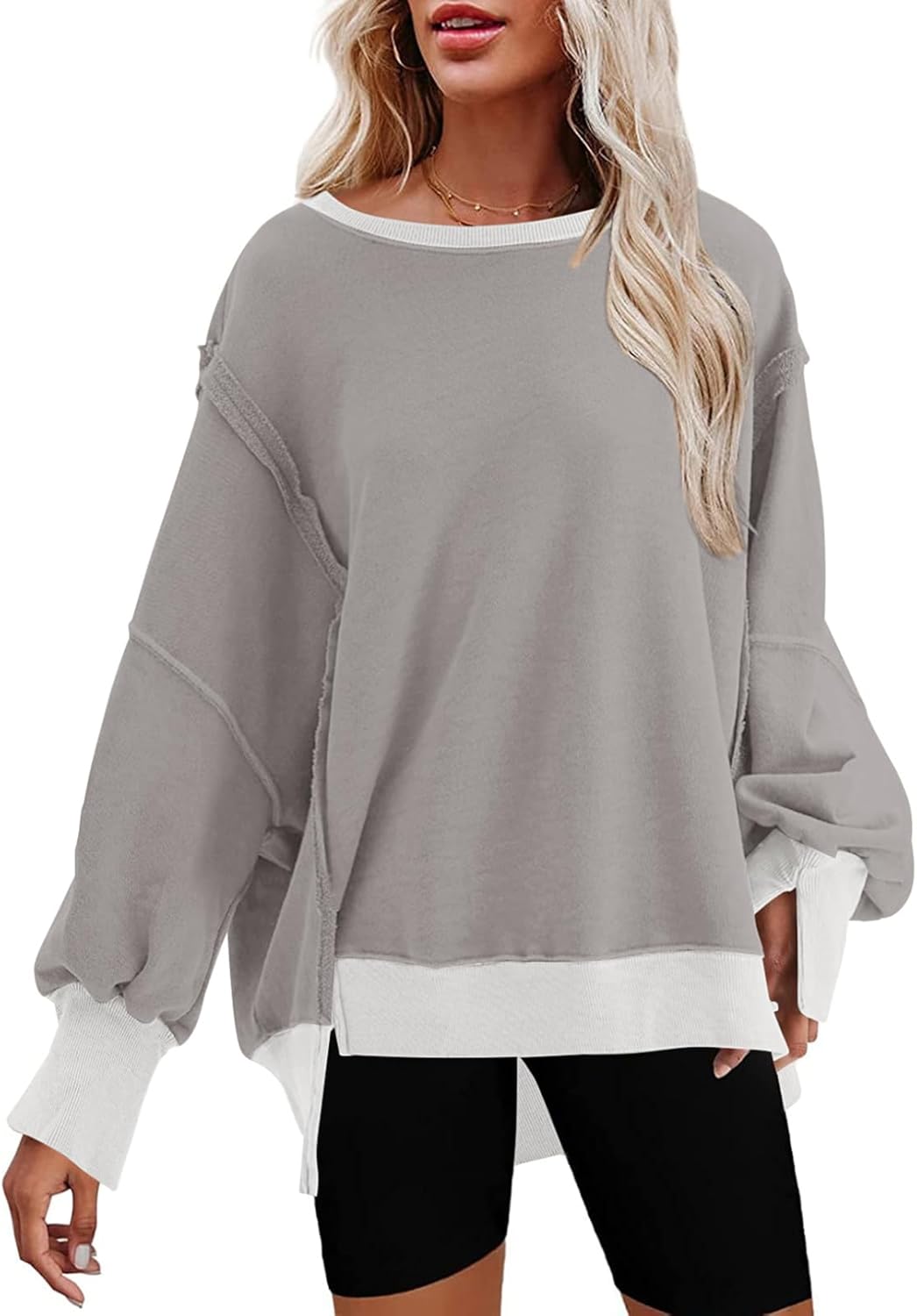 2024 Oversized crew neck sweatshirt with side slit long sleeve hoodie
