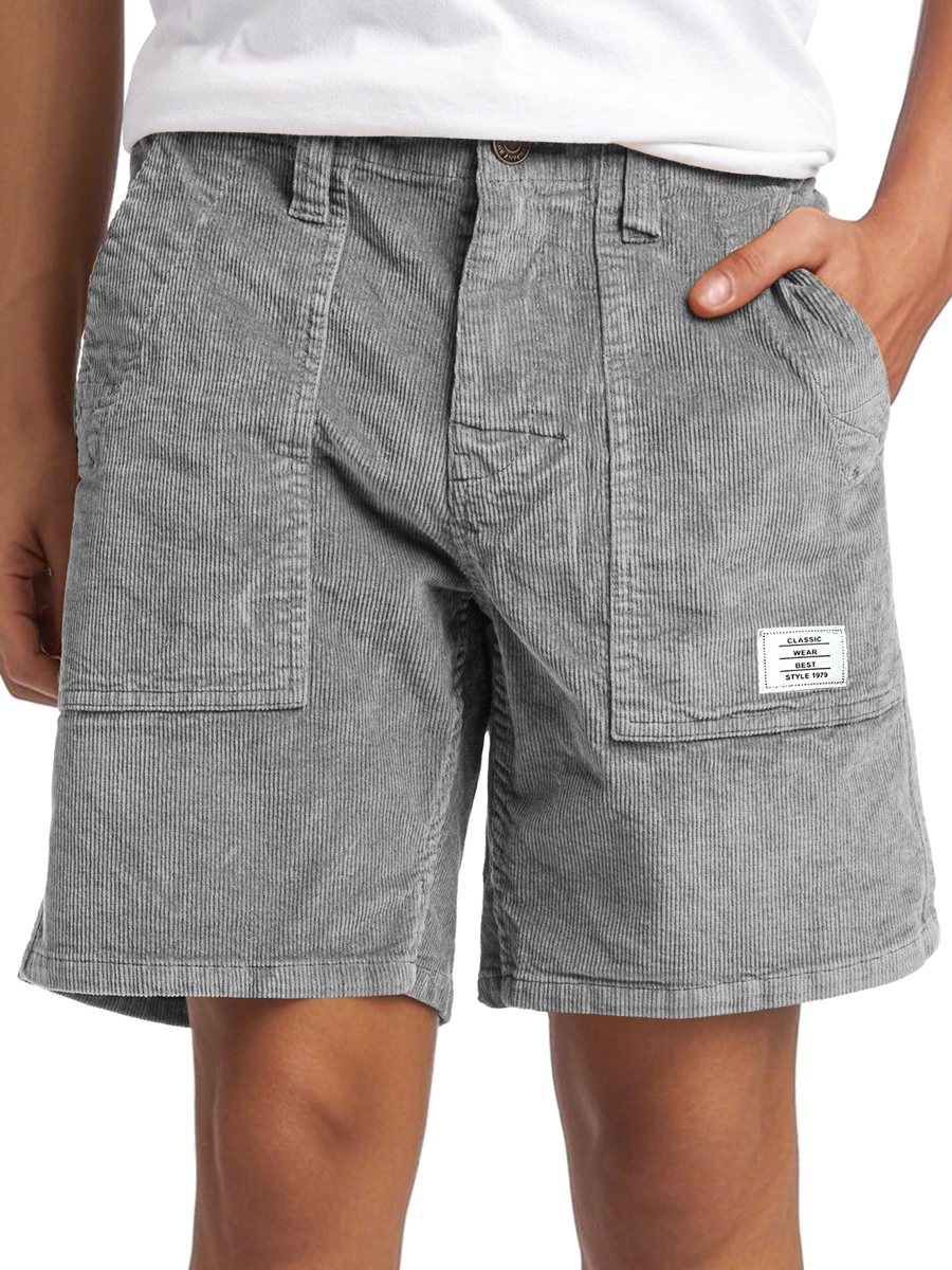 Men's Vintage Corduroy Embroidered Logo Casual Solid Color Comfort Shorts