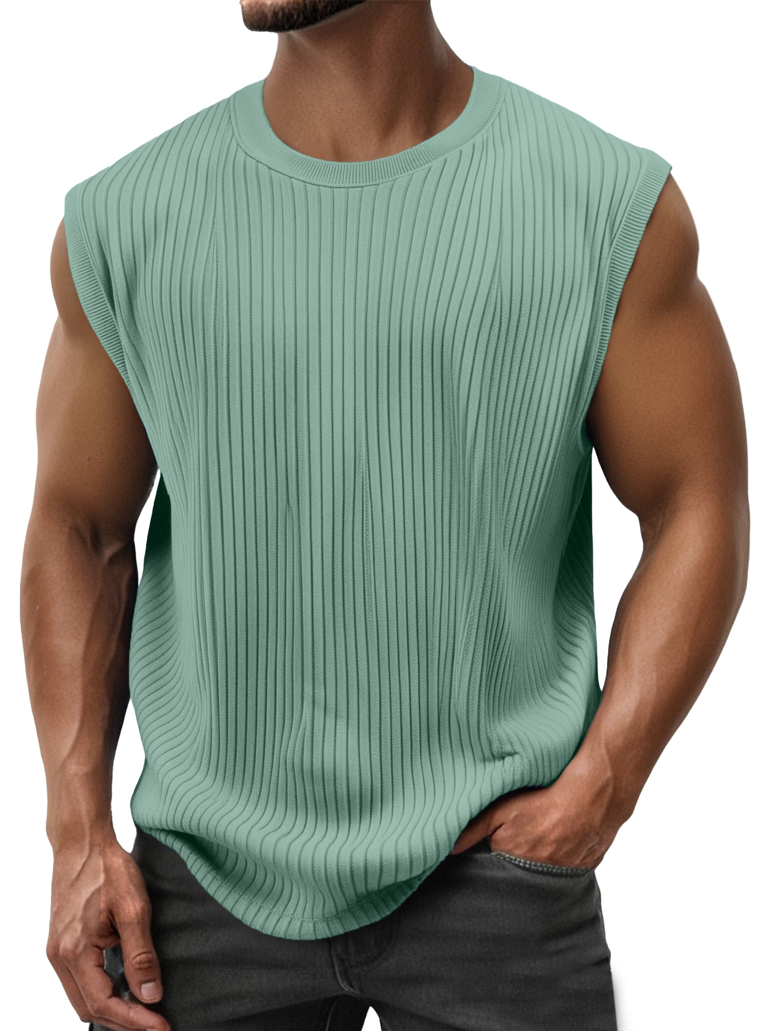 Men's Simple Everyday Solid Color Vertical Strip Sleeveless Round Neck T-shirt
