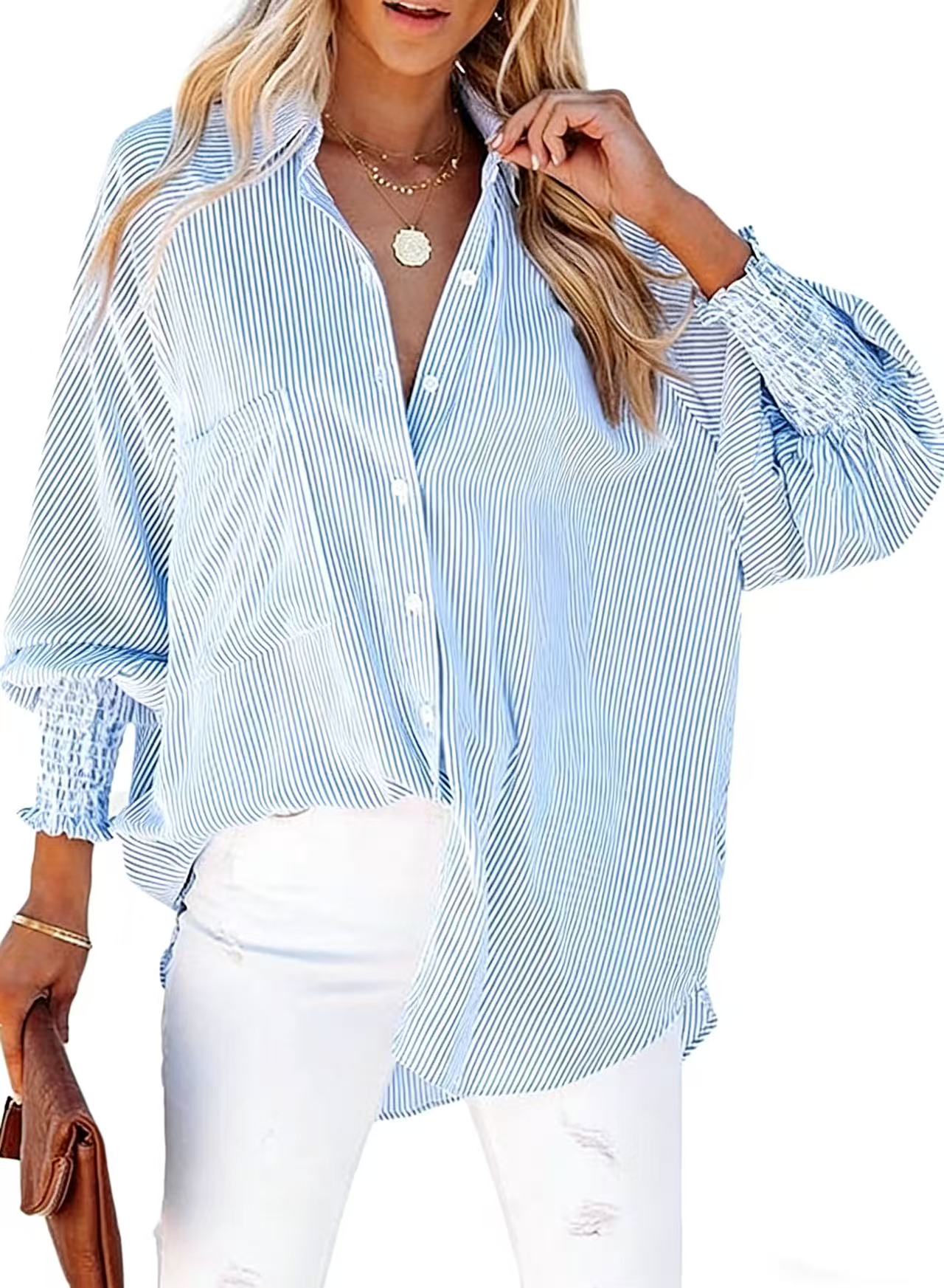 🌸Women's striped casual shirt with ruffled cuffs