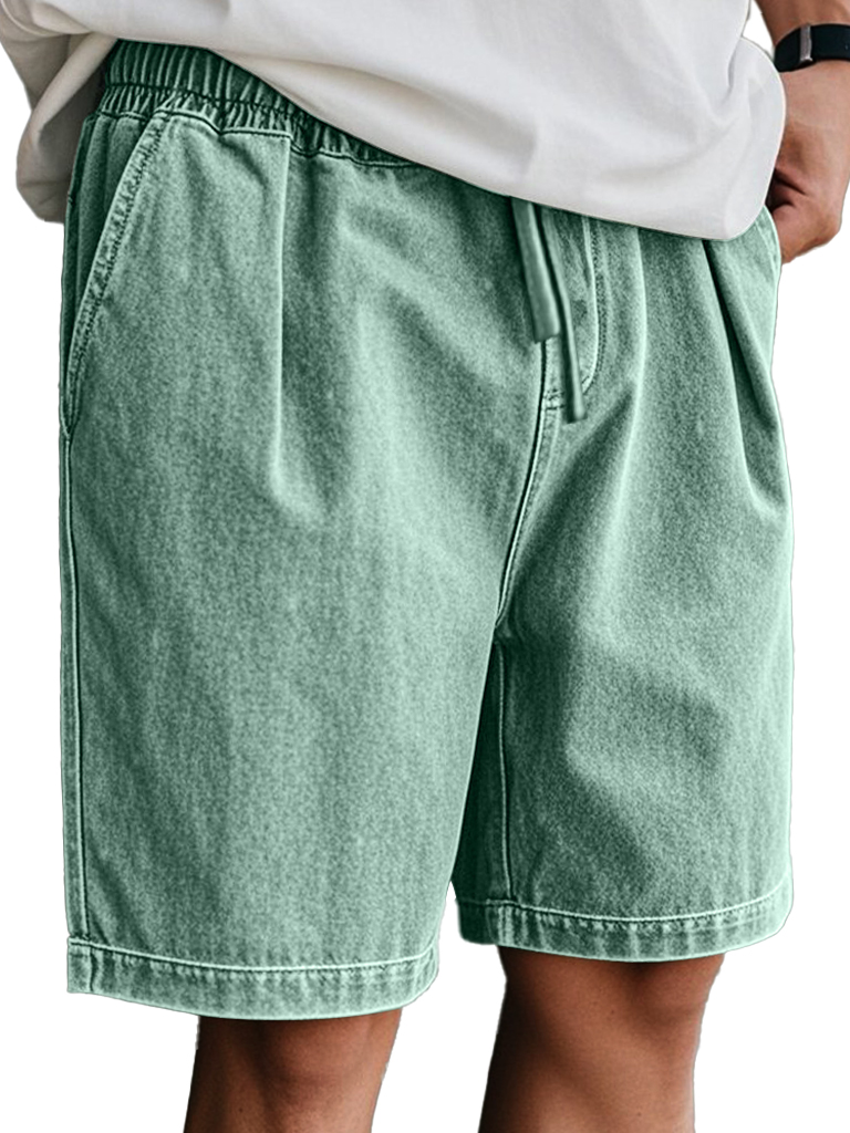 Men's Retro Casual Elastic Waist Solid Color Comfort Shorts