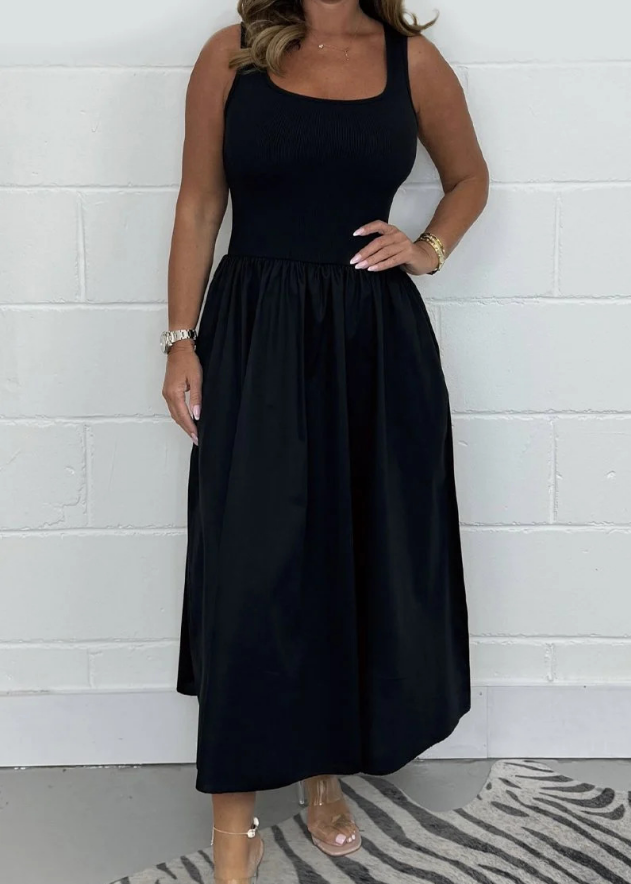 Cotton Linen Deep V-Neck Pleated Large Swing Pocket Dress