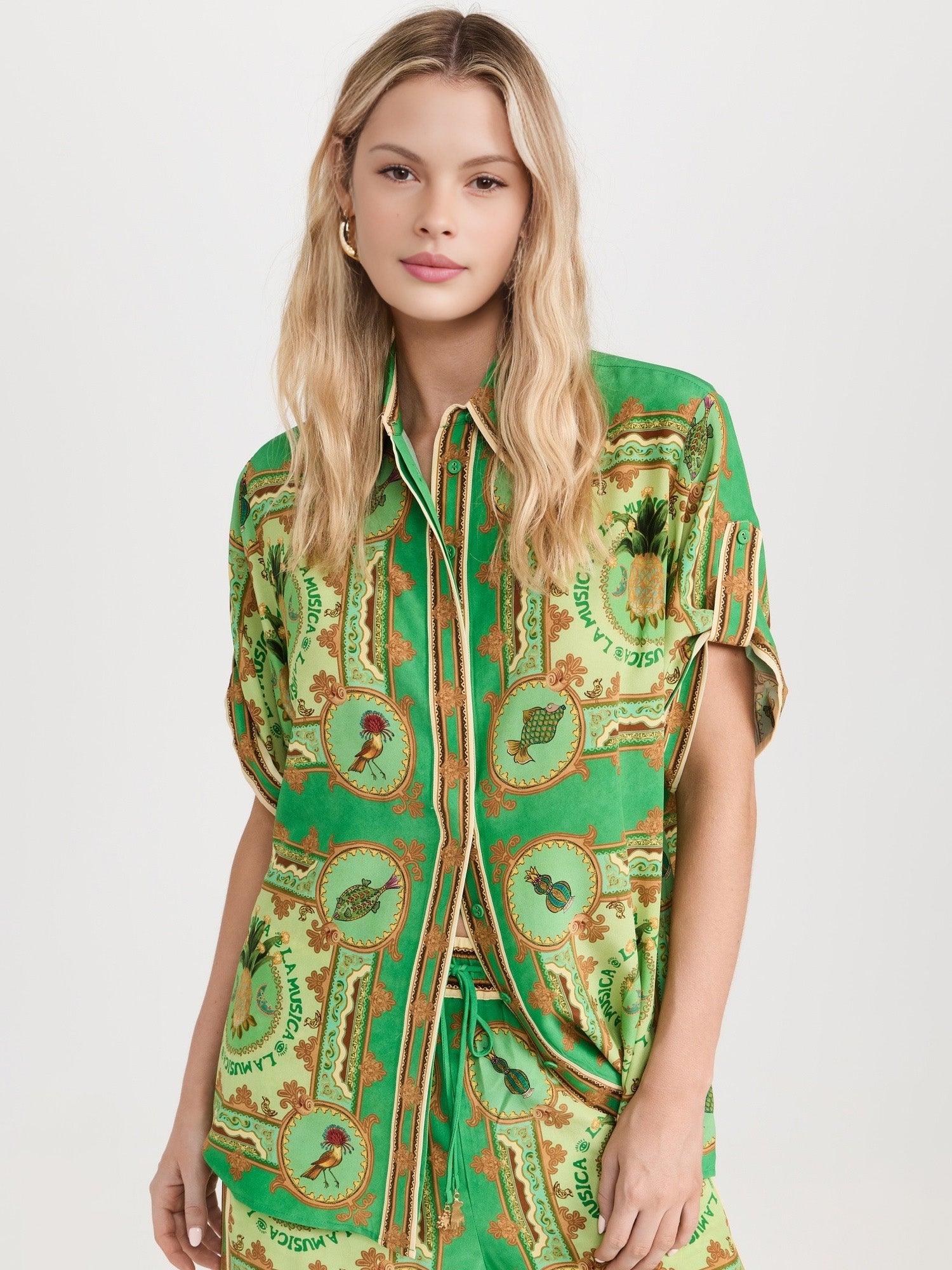 Colorful Unique Print Balloon Sleeve Button Loose Shirt