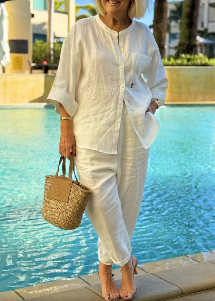 Women's Summer Breathable Elegant Linen Two-Piece Set