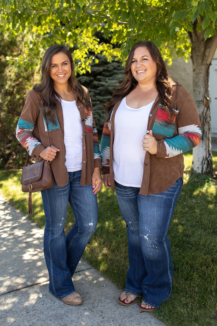 Brown Corduroy Nomad Aztec Shacket (SM-2X)