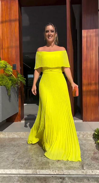 Women's News Pleated Flat shoulder sleeves Waist-Cinching Dress