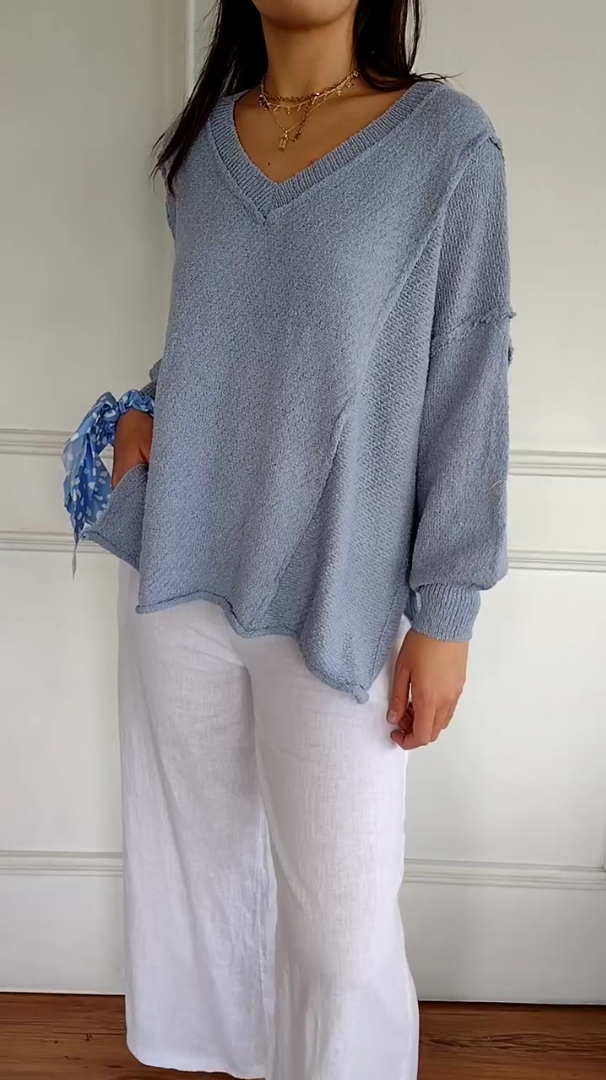 Long Sleeve Sweater With Patchwork Design