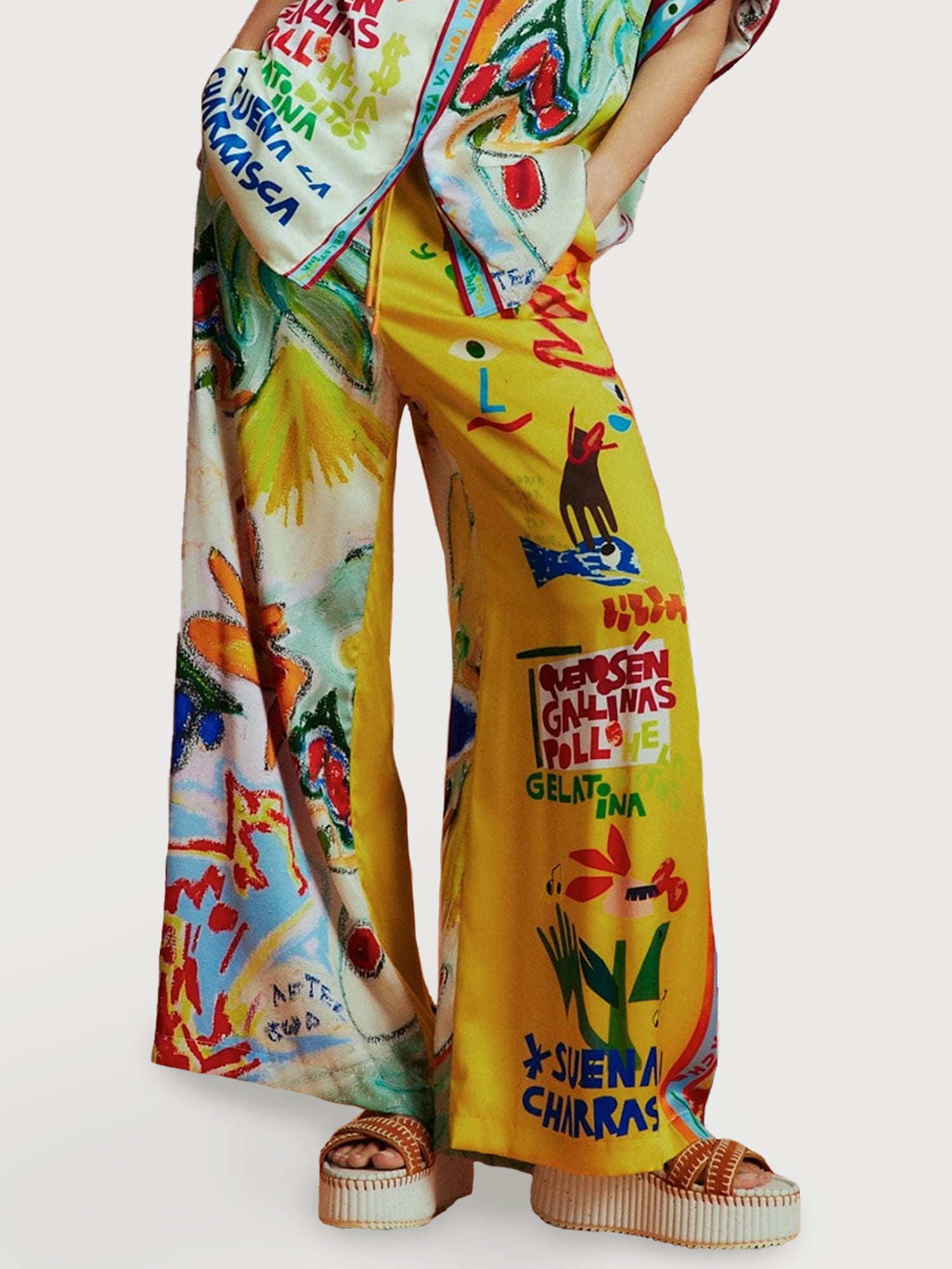 Vibrant Art Print Wide-Leg Pants