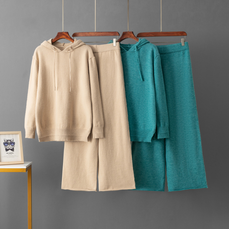 2025 Loose-fitting Casual Hooded Thick Wool Straight Wide-leg Two-piece set