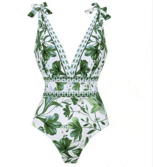Exquisite Beach Vacation Wave Print High Waist Bikini Set