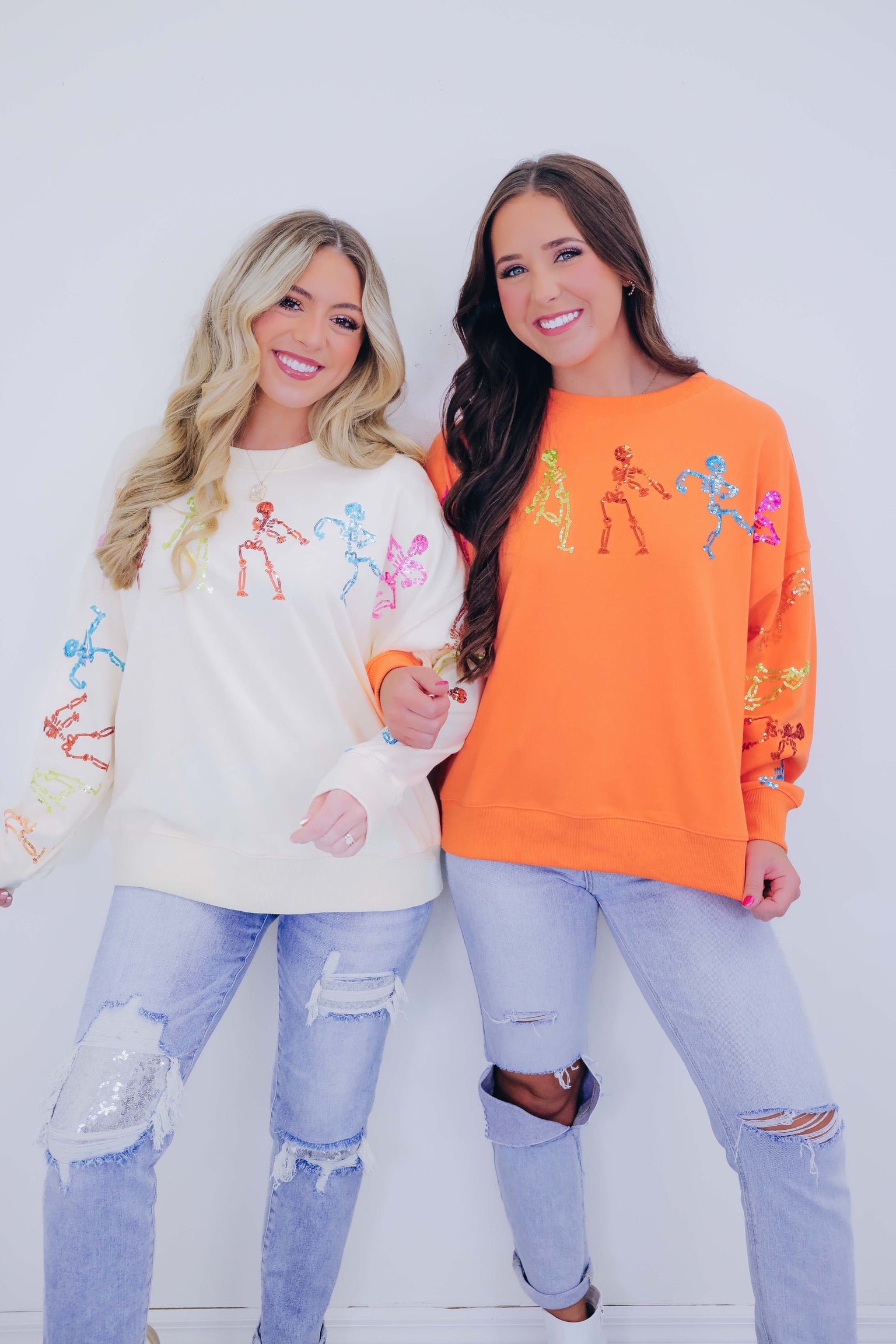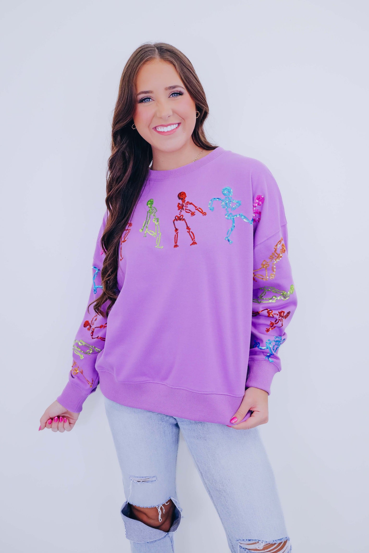 🔥Halloween👻Dancing Skeleton Sequin Embellished Sweatshirt🎃