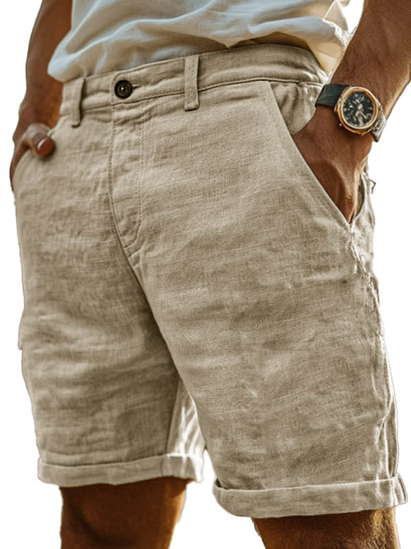 Men's Fashion Retro Hemp Fabric Pocket Casual Shorts