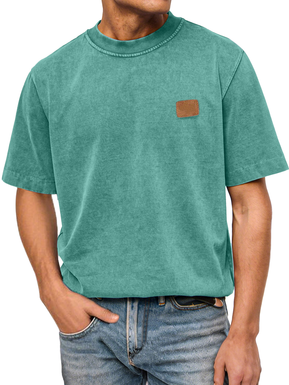 Men's Casual Retro Pure Cotton Washed Small Label Short-sleeved Round Neck T-shirt