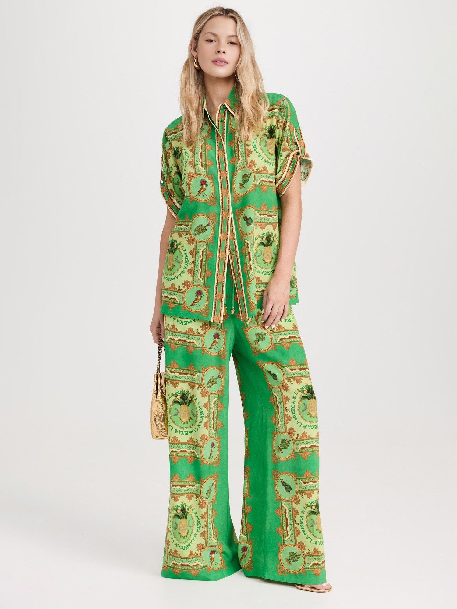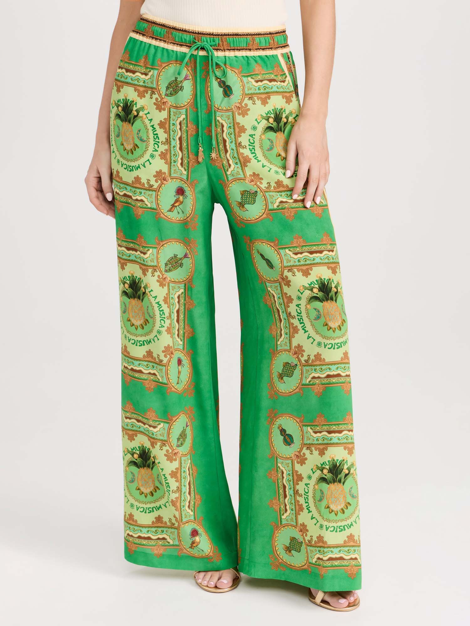 Green Paisley Print Wide-Leg Pants