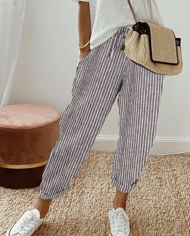Casual Striped Loose Drawstring Pants