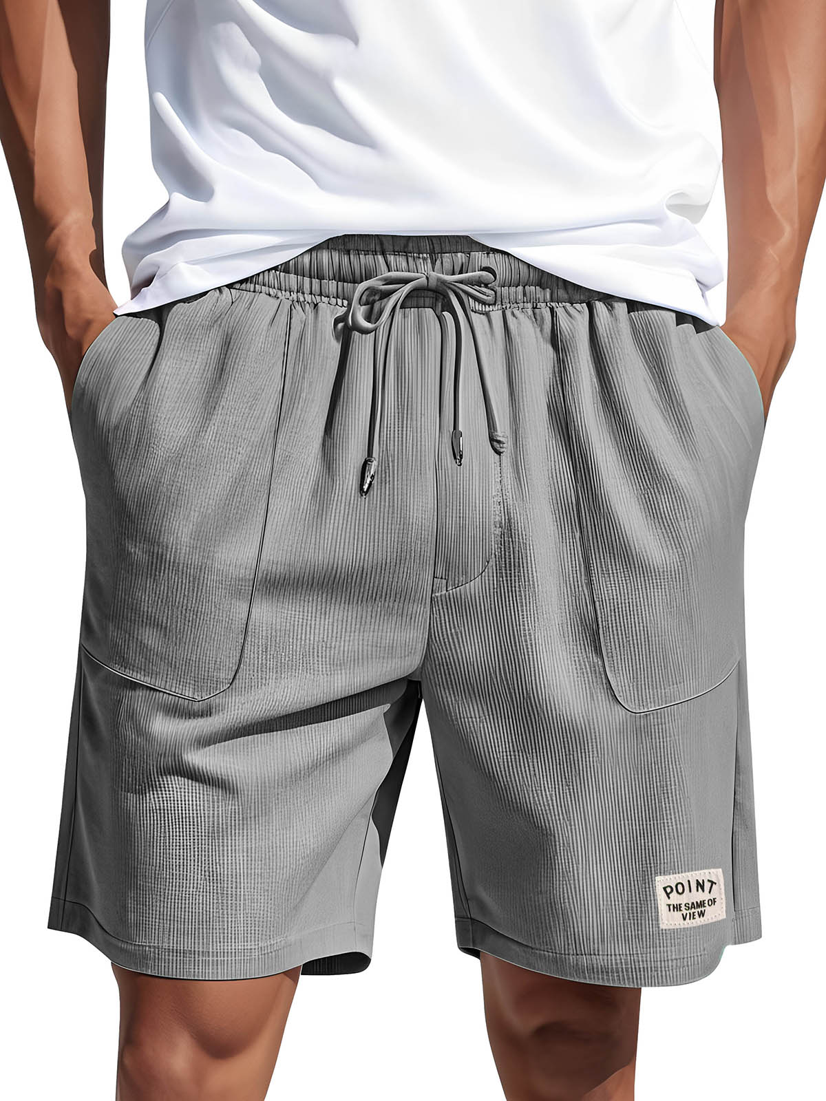 Men's Daily Texture Elastic Waist Drawstring Solid Color Shorts