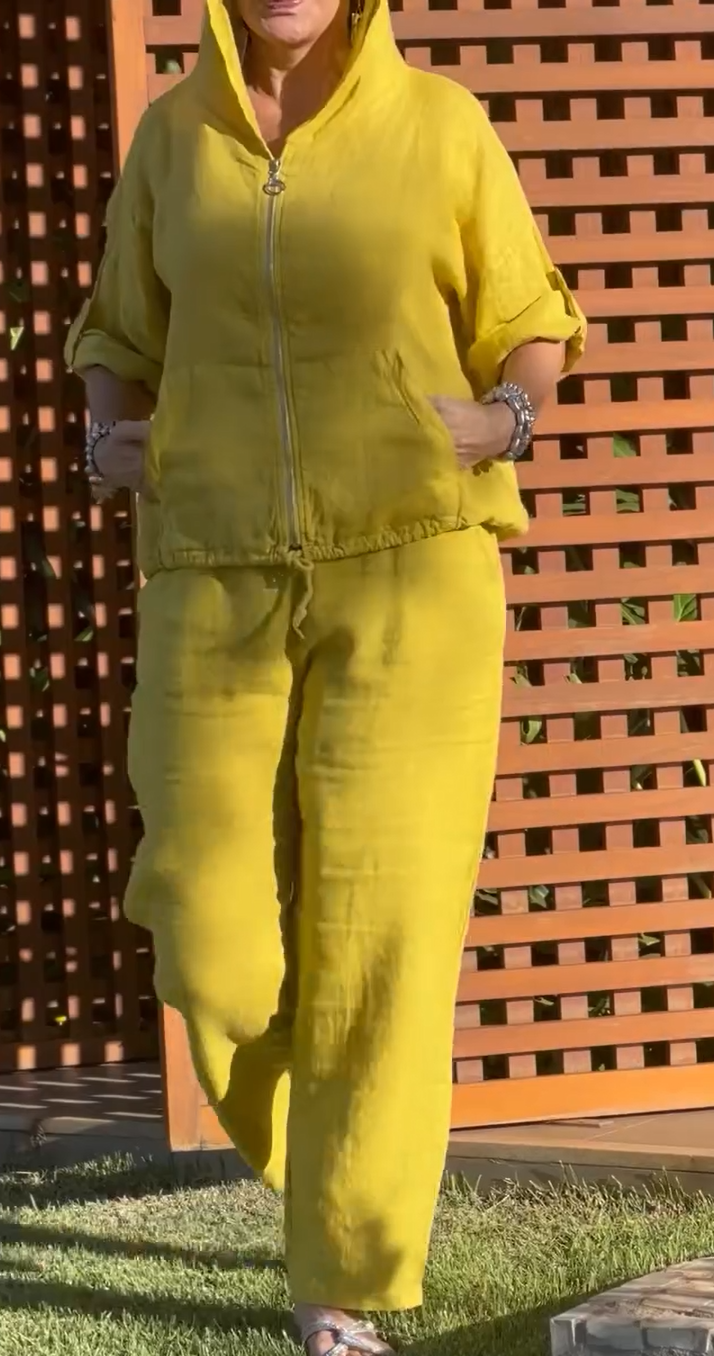2025 Women's Cotton and Linen Casual Zipper Two-piece Set