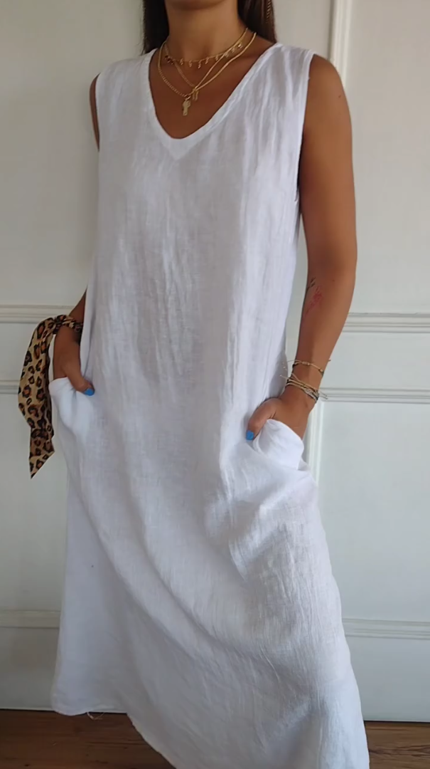 Women's Cotton linen casual sleeveless dress