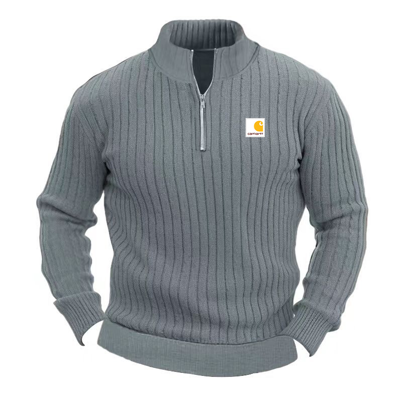 Men's Solid Color Stand Collar Knitted Pullover Sweater