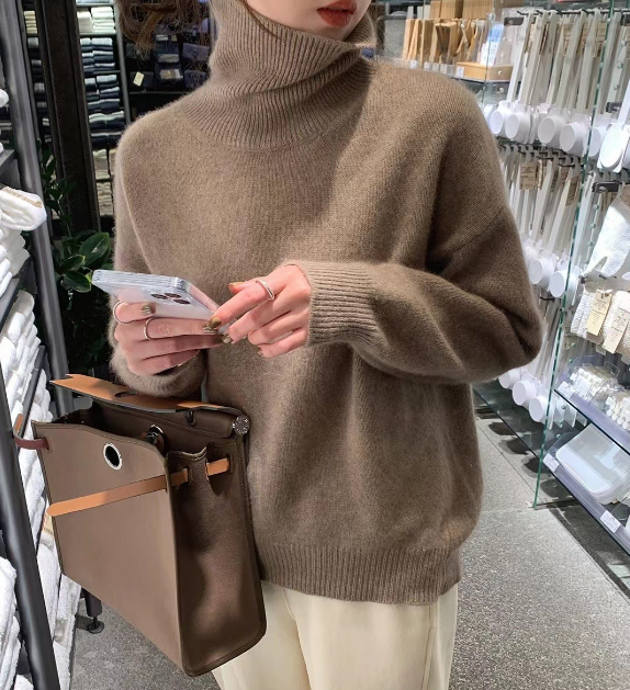 2026 Casual Plus Size Turtleneck Cashmere Knit Sweater