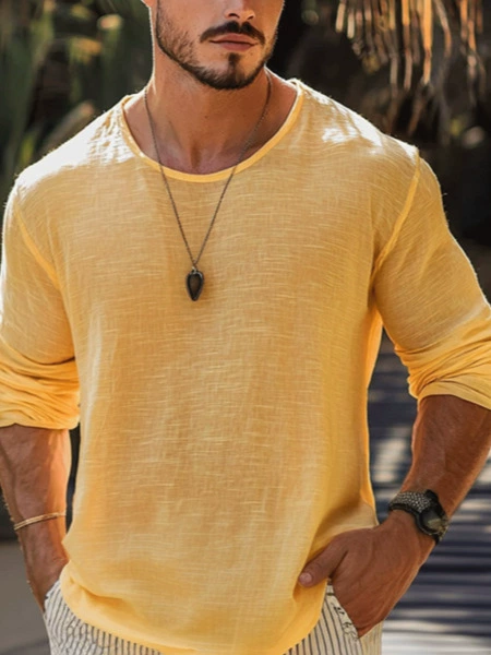Spring Linen Men's Solid Color Breathable T-shirt