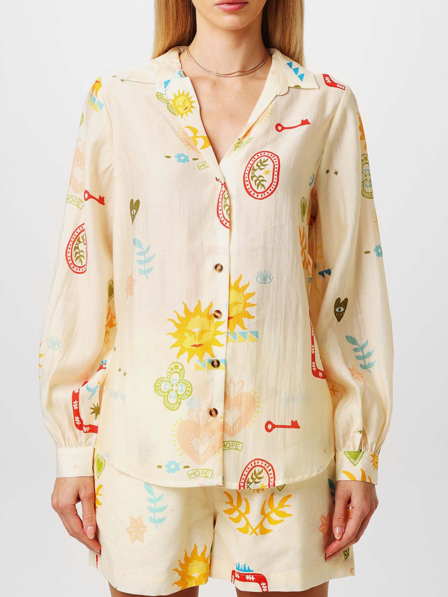 Sunlit Harmony Printed Shirt & Shorts Set