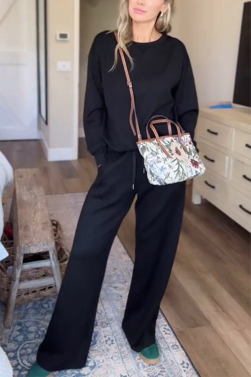 Women's solid color round neck cashmere knitted long sleeve casual two-piece suit