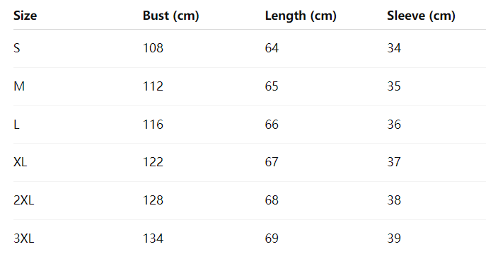 📏 Size Chart: