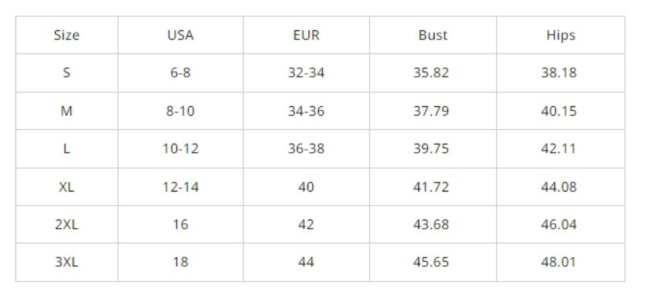 Note: The bust (waist) value on the size chart is the recommended size for each size. They are not actual measurements. Please select the appropriate size according to your size.