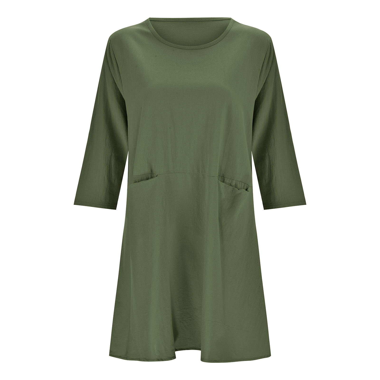 2024 women's spring and summer loose round neck three-quarter sleeve cotton and linen women's clothing