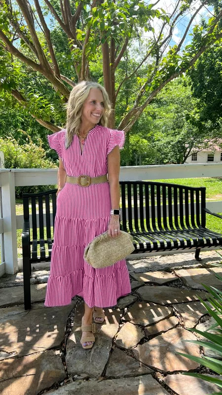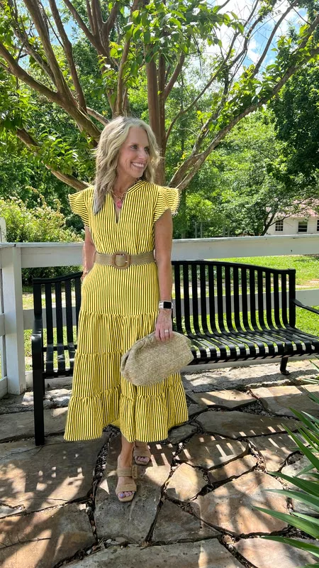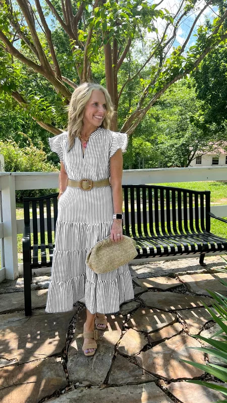 - Elegant Striped Print: Enhances the dress with a stylish and unique pattern.