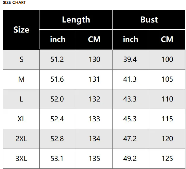 SIZE CHART: