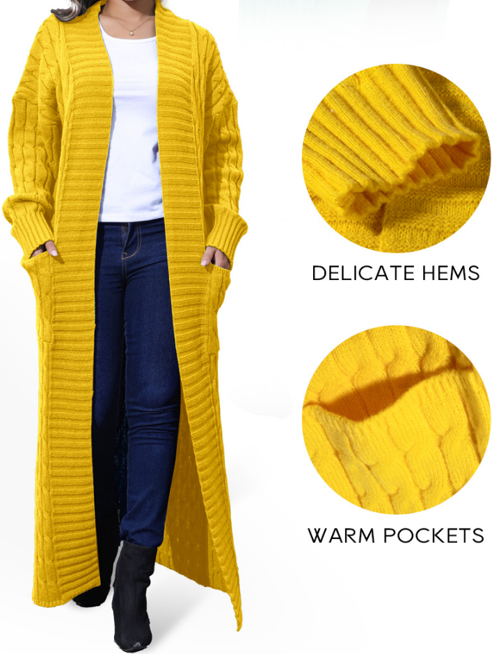 - Features: Cardigan For Women, Long Sleeve, Open Front, Cable Knit Cardigan, Solid Color, Long Sleeve, Floor Length, With Pockets, Chunky Knitwear Casual Style, Oversized Sweater Coat Outwear For Fall Winter. Fall Winter Warm Knit Coat Outwear Creates Slouchy And Casual Silhouette.