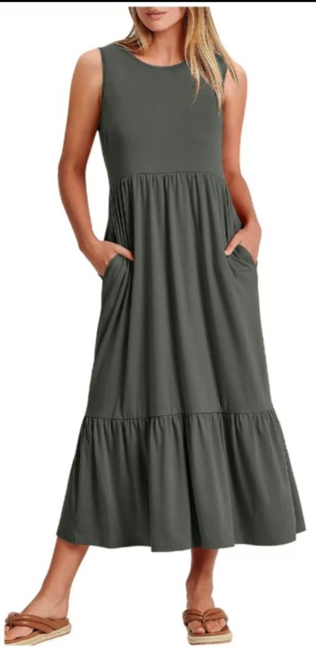 This long dress with a big swing is suitable for spring and summer activities! It is light and airy, with just the right number of layers and a lovely slit neckline. Get ready to match your favorite sandals! What a big winner!