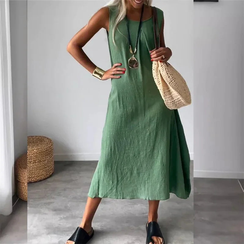 If you're looking for a piece that blends lightness, comfort, and timeless sophistication, this cotton and linen dress is the ideal choice! Made of cotton and linen, it offers a soft, breathable feel that ensures coolness on hot days and a perfect fit.