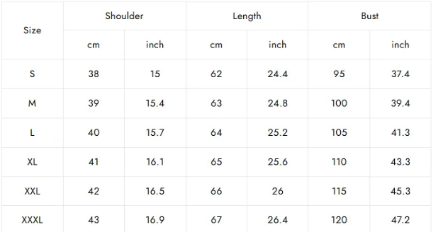 SIZE CHART:
