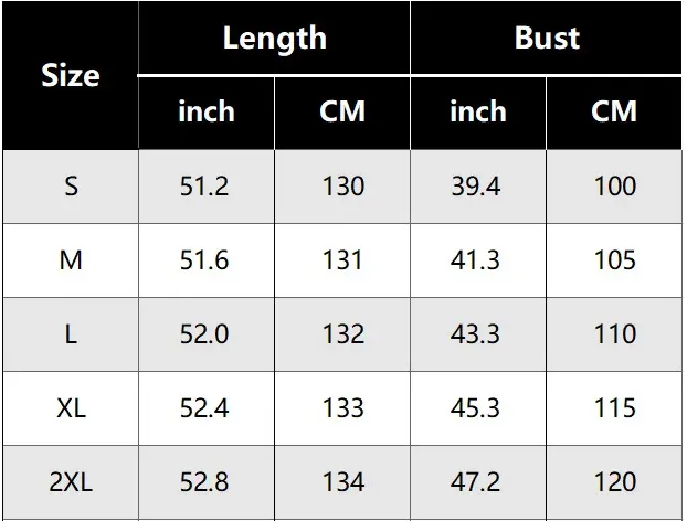 SIZE CHART: