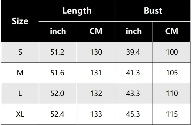 SIZE CHART: