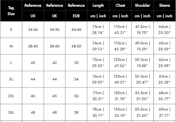 Size: S, M, L, XL, 2XL, 3XL,
