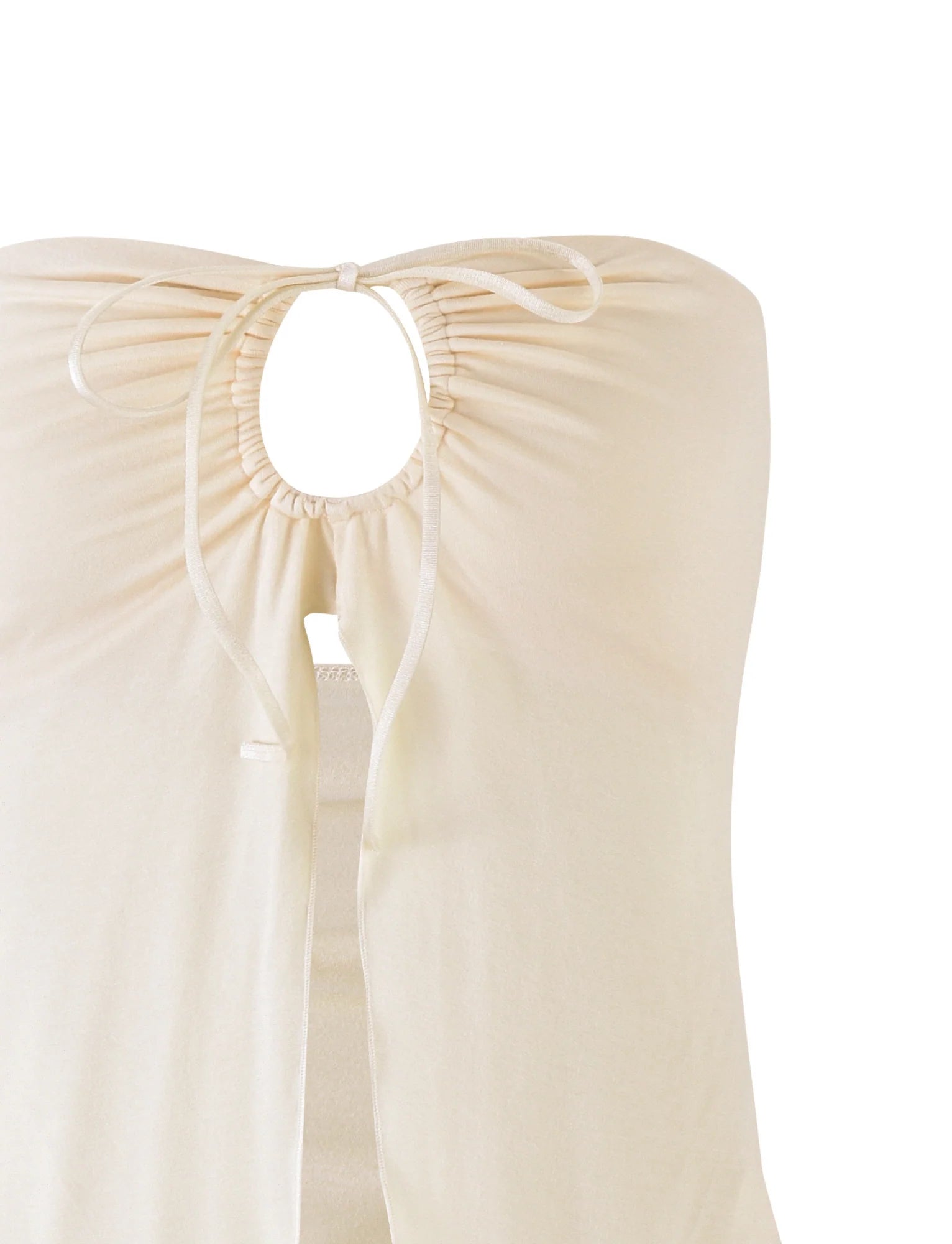 This stunning set is perfect for summertime. The maxi skirt pairs perfectly with the tube top, featuring a stylish cutout in the center. It creates a sexy look, while also flattering the body in all the right places. The top can be adjusted with ties, ensuring a perfect fit for every body type. The skirt has a low-rise fit and a maxi length.