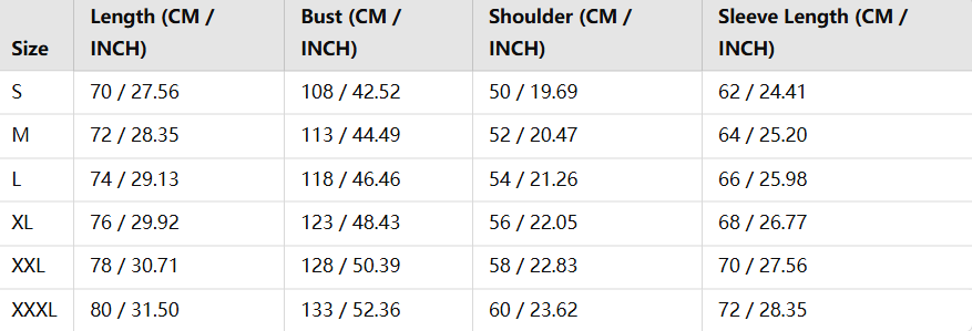 - The size charts may vary due to different products or suppliers. Measurements shown in the size guide refer to measurements of the garment, and not body measurements.