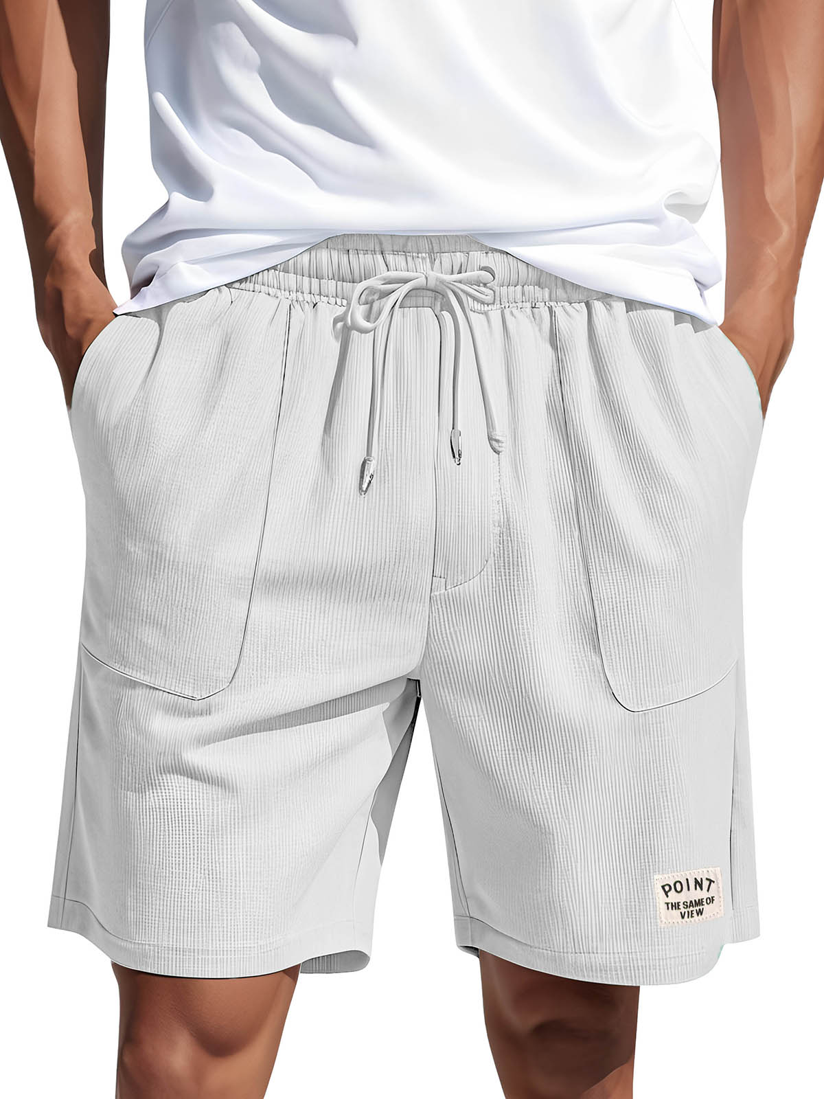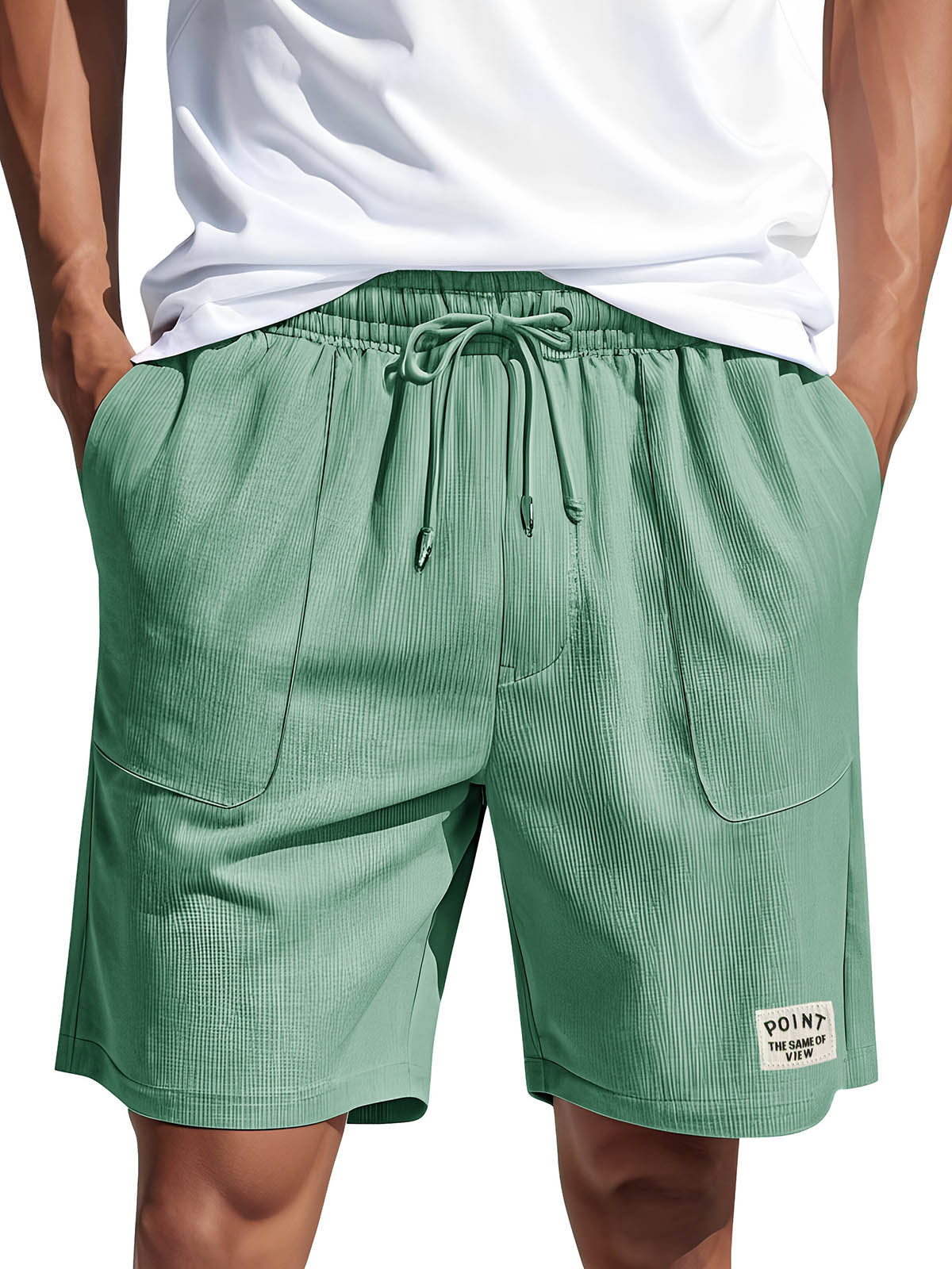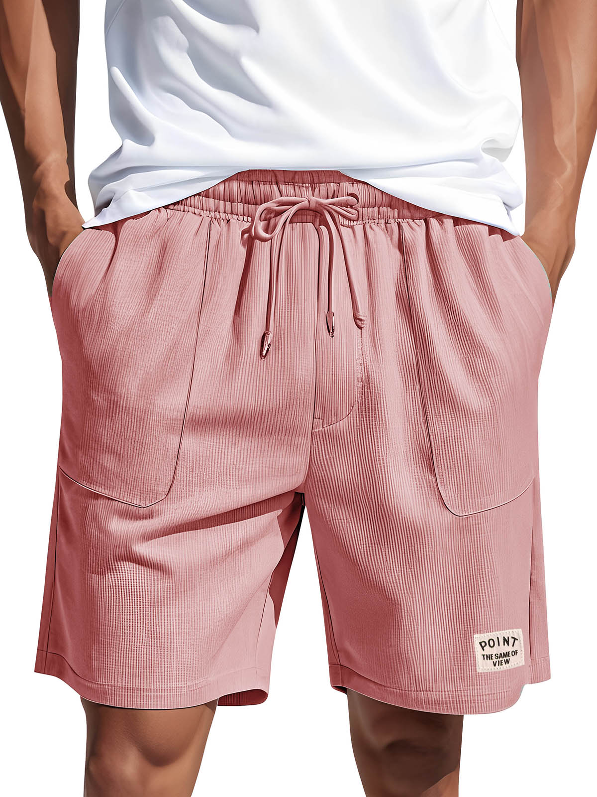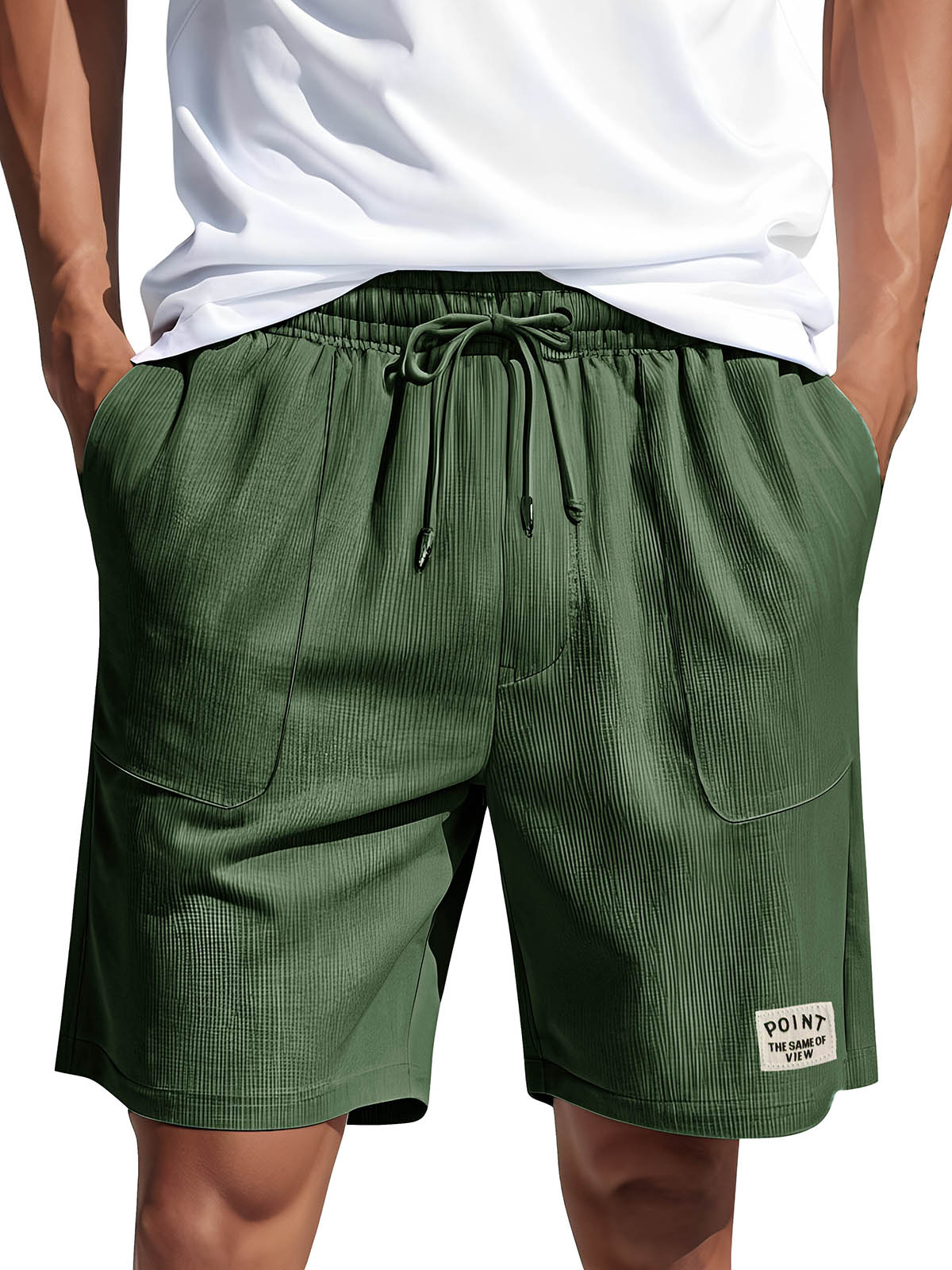 Men's Fashion Casual Corduroy Logo Embroidered Pocket Lace-up Shorts