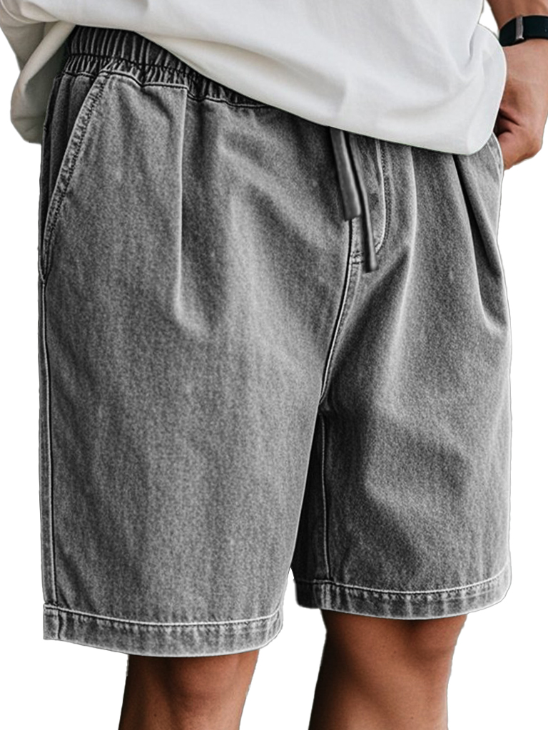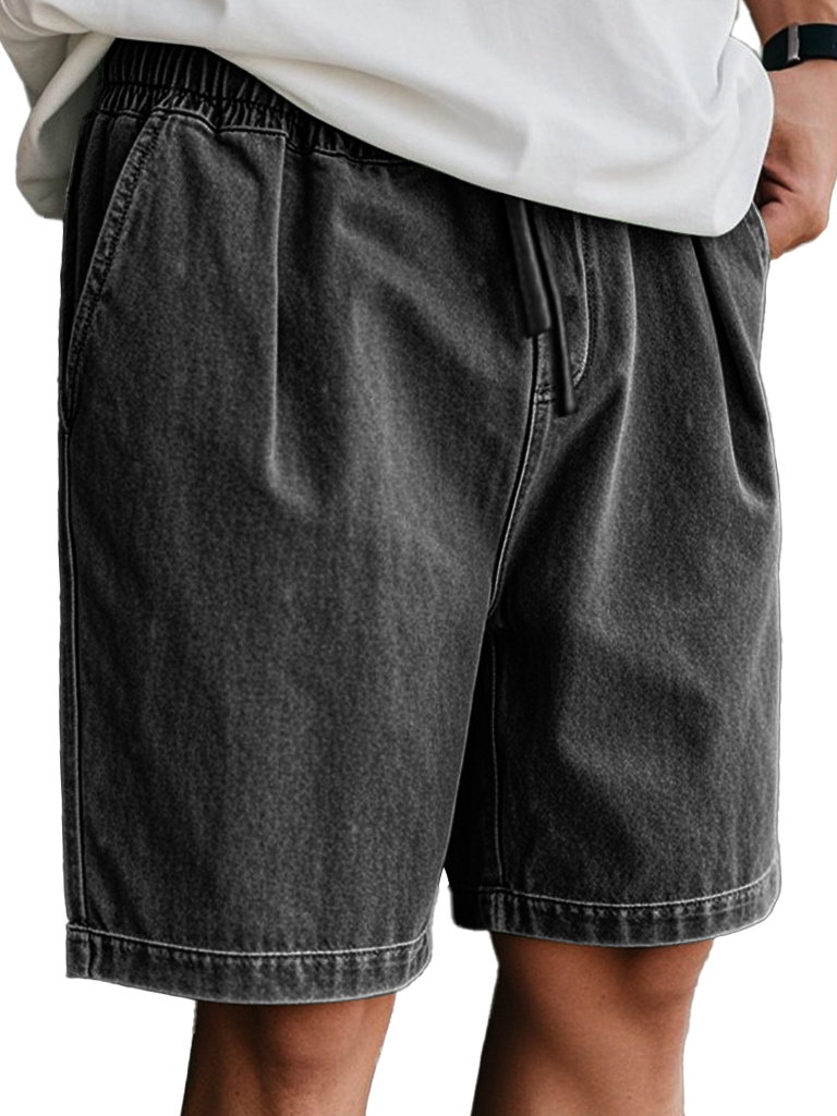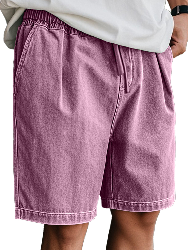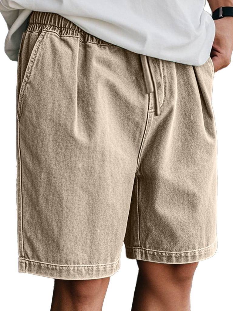 Men's Retro Casual Elastic Waist Solid Color Comfort Shorts