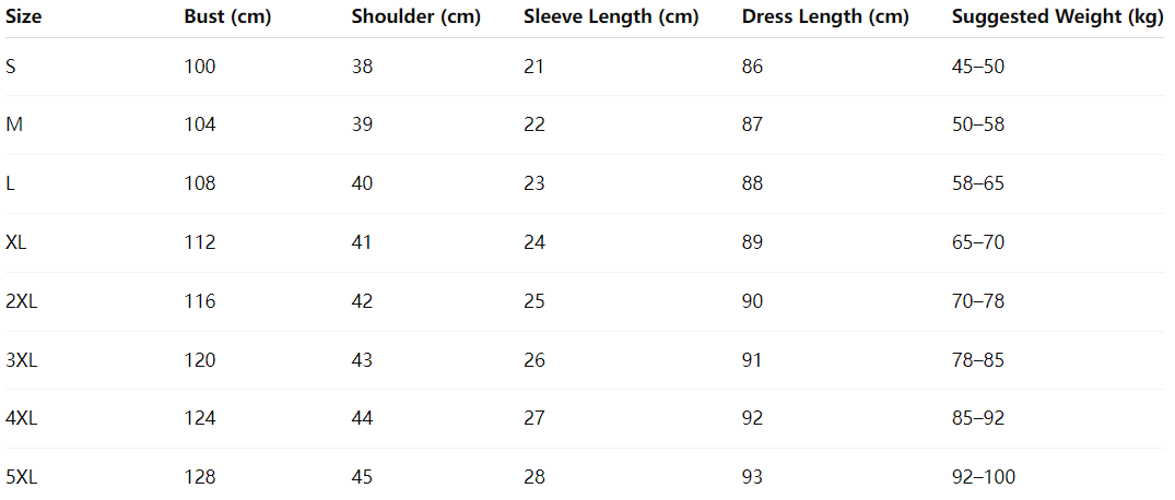 📏 Size Chart — Striped Shirt Dress (S–5XL):