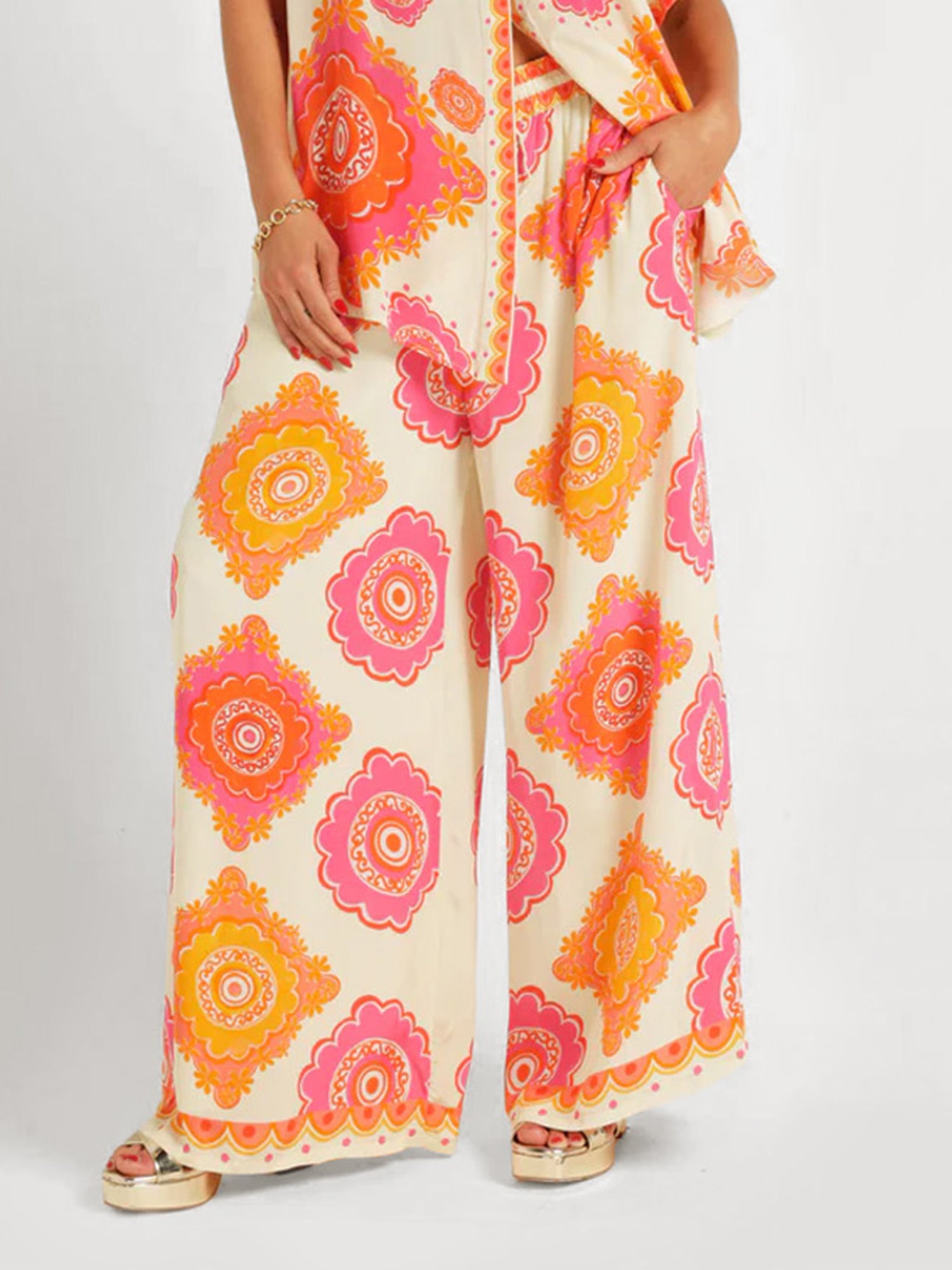The Retro Floral Print Wide-Leg Pants offer a breezy, comfortable fit with vibrant floral designs. The wide-leg cut and soft fabric make them perfect for warmer weather, while the bold floral print adds a retro flair. Pair them with the matching shirt for a cohesive look or wear with a casual top.