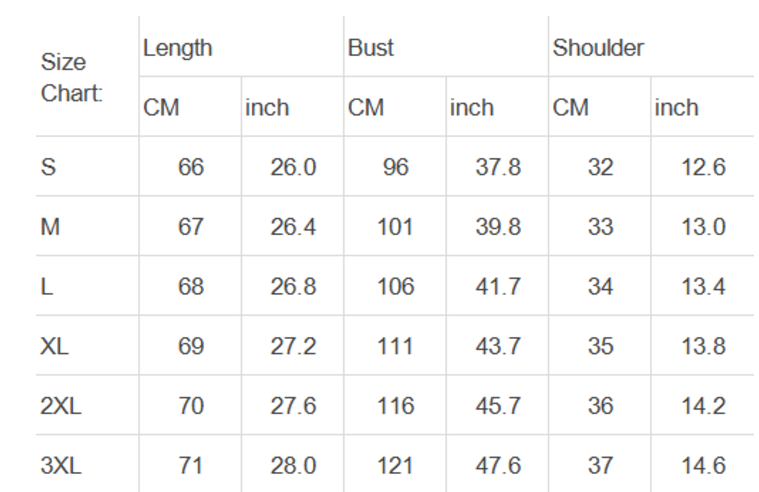 - The size charts may vary due to different products or suppliers. Measurements shown in the size guide refer to measurements of the garment, and not body measurements.