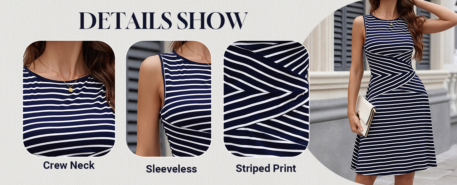 - Crew Neck, Sleeveless, Striped Print, A Line, Ruffle Hem, High Waist, Summer Short Dress